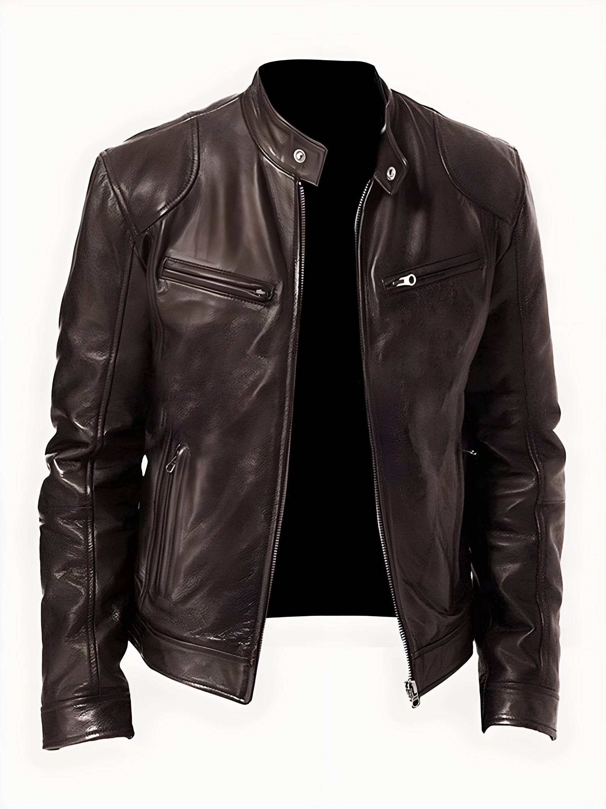 Klassisches Design: Stehkragen und Reißverschlusstaschen für den typischen Biker-Look.