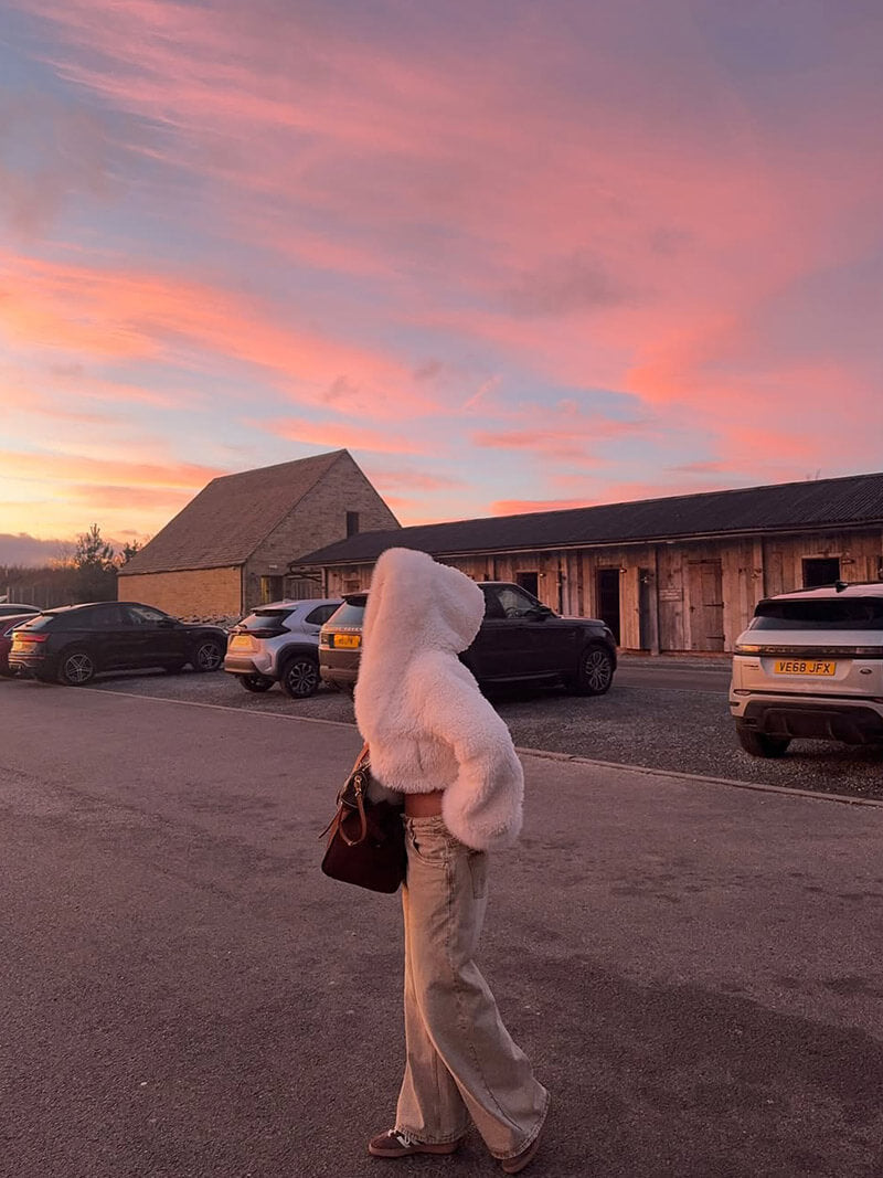 Diese fluffige Oversize-Felljacke mit extravagant großer Kapuze bietet ein unvergleichlich weiches, warmes Tragegefühl – ideal für eisige Wintertage. Die voluminöse Silhouette schafft einen stylischen, modernen Look, während das hochwertige Kunstfell für maximalen Komfort sorgt. Perfekt für gemütliche Coffee-Dates, City-Walks oder elegante Wintermomente.
